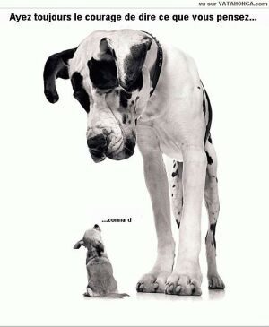 Le petit mec répond "Non, il n'y a rien mais je crois que mon chien vient de tuer le vôtre ... "