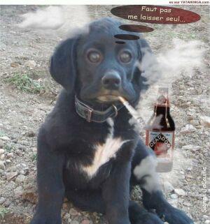 Et alors, tout à coup, le chien lève les yeux vers le voisin et dit avec les larmes