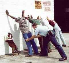 C'est ainsi que nous le retrouvons le lendemain matin, flanqué de deux énormes pitt-bull, l'écume aux lèvres et sevrés de viande depuis huit jours (les chiens, pas l'homme !!!).