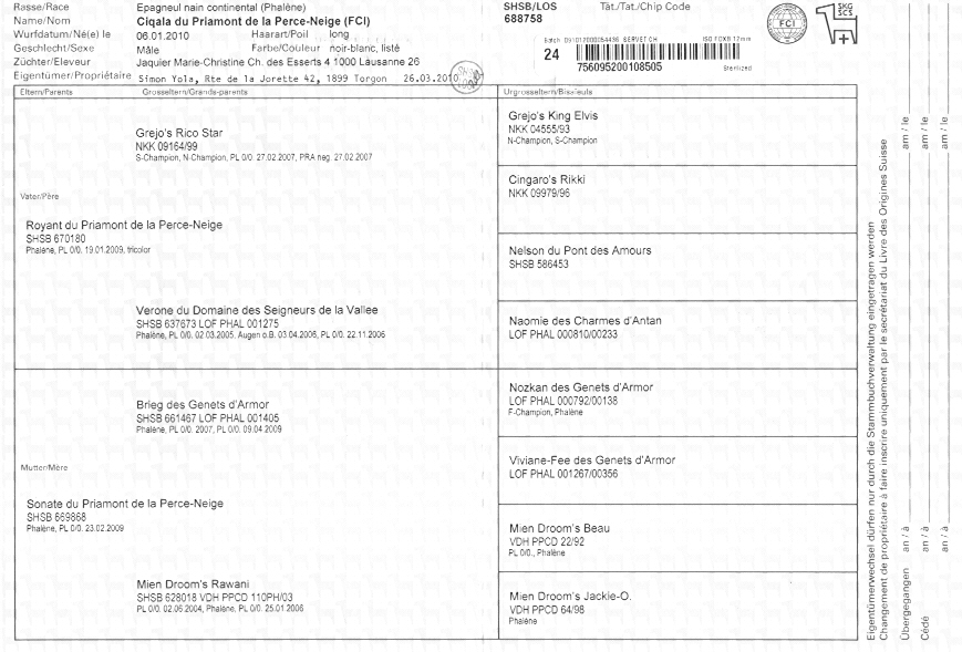 Merci Wubitt pour tout ce que tu nous as apporté. Pedigree - Résultats d'expositions